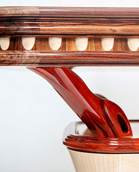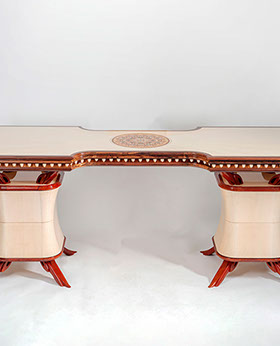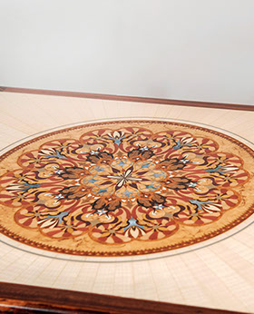 While Designing Rhamtail I was looking to create a desk to use for the experience. A Feeling, a glorification, a comfort to sit in front of it. Where I imagine what a welcoming surprised it will be to have your conversation with costumers at this desk. Once they have taken there seat at the table the can admire the marquetry. As you hold you conversation the more detail will be noticed. This will create a reference atmosphere during the conversation that the customer takes home.
