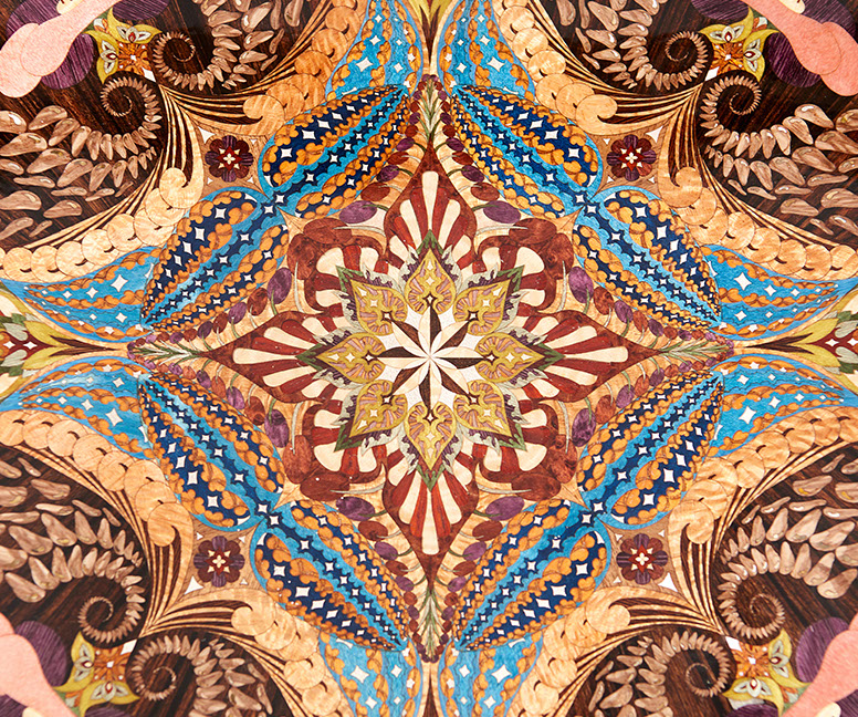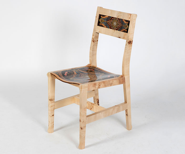 De stoel waarmee je de rijkdom kan verbergen door erop te zitten. Waarbij er een windroos uitmondt tot een bloem. Dat vertaalt is in een zeer verfraaid inlegwerk van fineer.