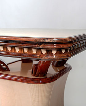 While Designing Rhamtail I was looking to create a desk to use for the experience. A Feeling, a glorification, a comfort to sit in front of it. Where I imagine what a welcoming surprised it will be to have your conversation with costumers at this desk. Once they have taken there seat at the table the can admire the marquetry. As you hold you conversation the more detail will be noticed. This will create a reference atmosphere during the conversation that the customer takes home.