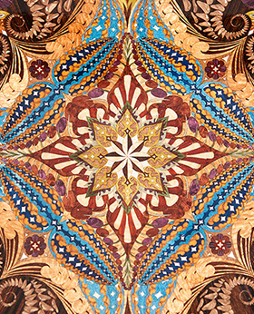 De stoel waarmee je de rijkdom kan verbergen door erop te zitten. Waarbij er een windroos uitmondt tot een bloem. Dat vertaalt is in een zeer verfraaid inlegwerk van fineer.